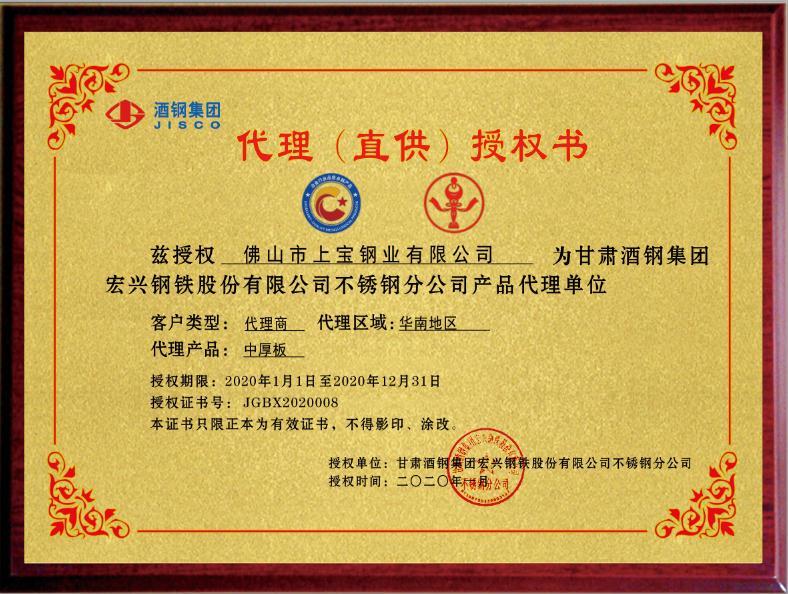 热烈祝贺佛山市上宝钢业有限公司获得酒钢中厚板代理